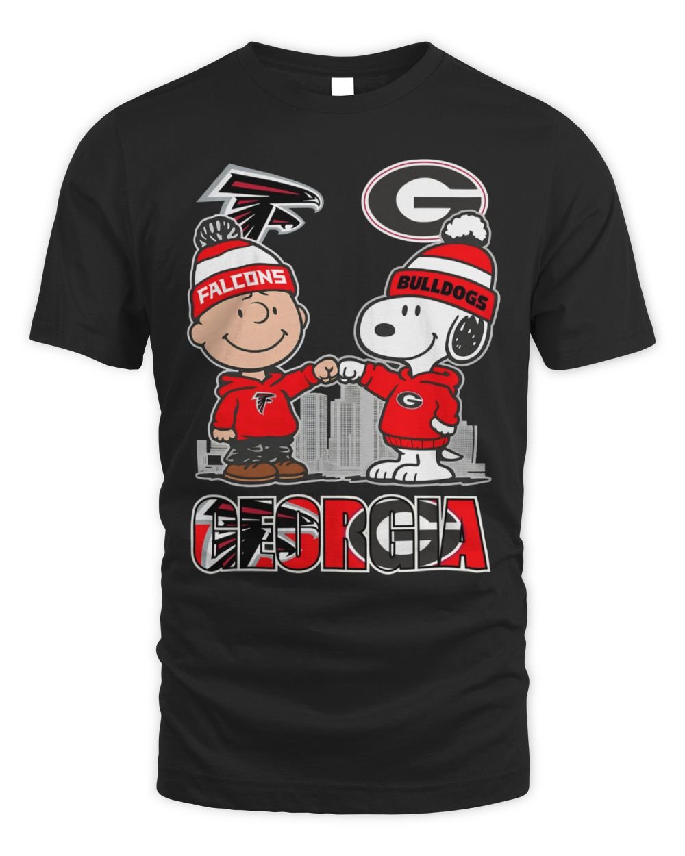 Georgia Bulldogs and Falcons Shirt Snoopy & Charlie Brown Skyline Graphic Tee